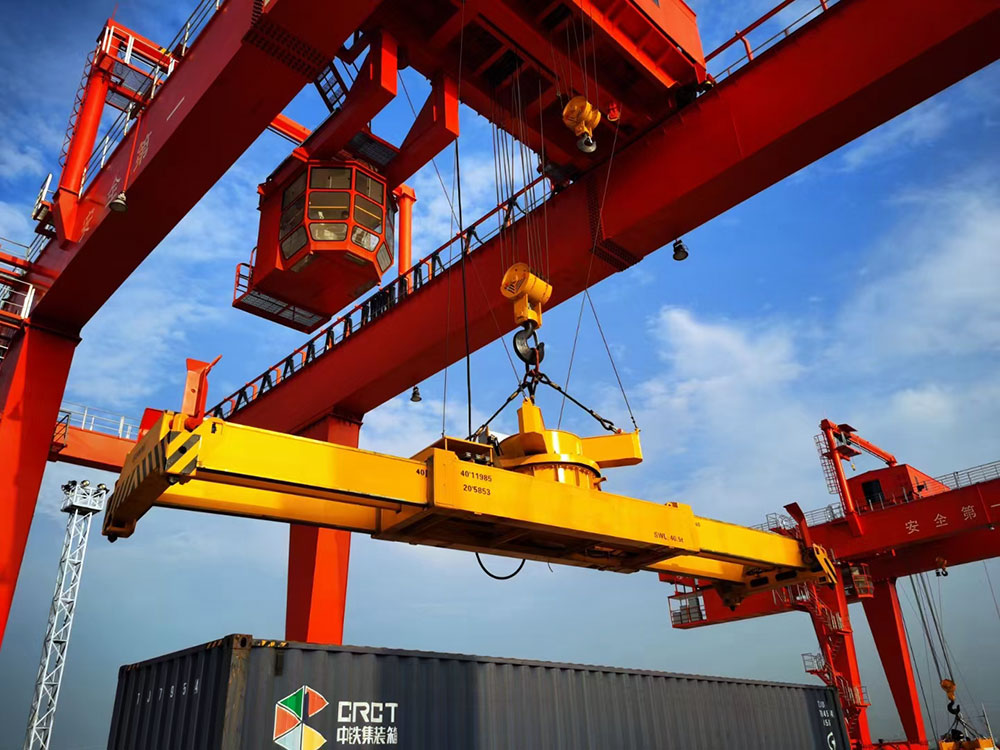 門式起重機是橋式起重機的一種變形,又叫龍門吊。主要用于室外的貨場、料場貨、散貨的裝卸作業(yè)。門式起重機具有場地利用率高、作業(yè)范圍大、適應面廣、通用性強等特點,在港口貨場得到廣泛使用。